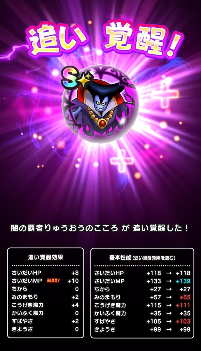りゅうおう覚醒ですが、最大の難関だった10万歩をイベント終了間際に滑り込みで達成し、覚醒しました!